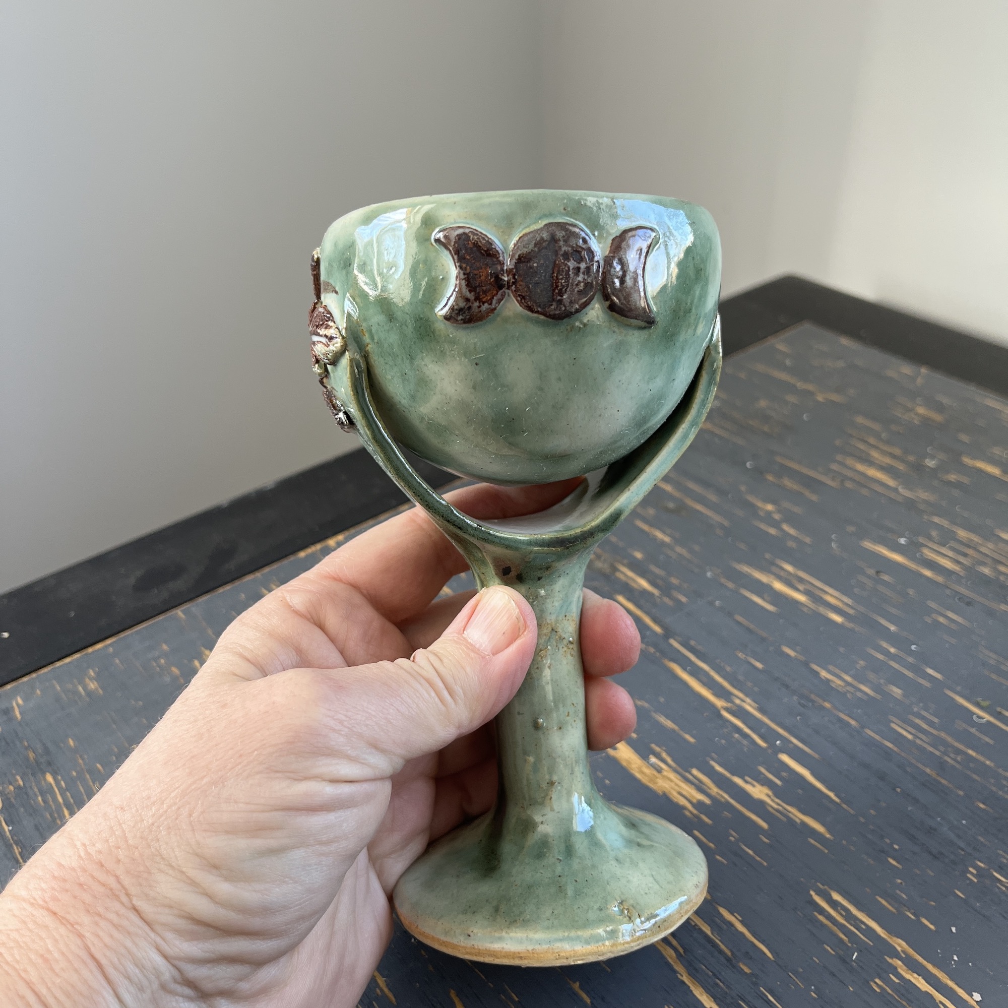 This is a one of a kind small smudging bowl with triple goddess decoration. It comes with a charcoal disk.